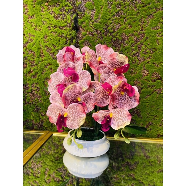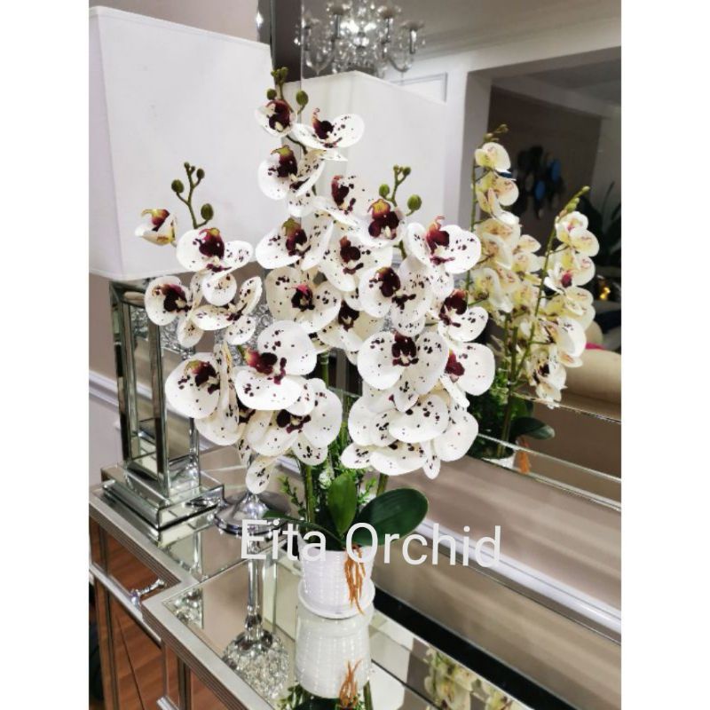 Bunga Orkid Hiasan Siap Gubah Orkid Latex 3 Tangkai Pasu Ceramic Shopee Malaysia